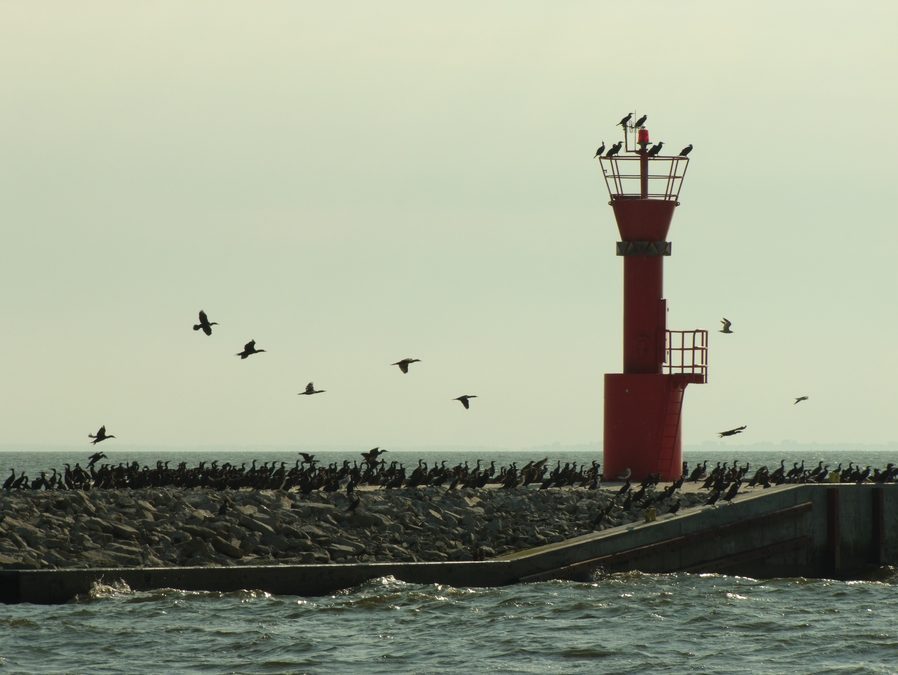 An der Einfahrt vom Stettiner Haff zur alten Kaiserfahrt begrüßt uns eine Kormorankolonie.