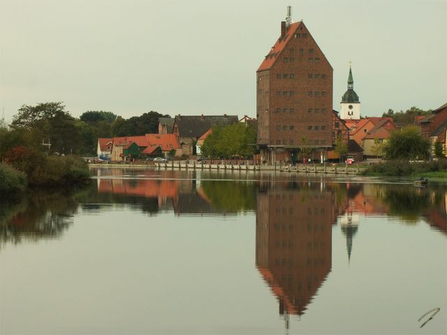 Sento -- Vor uns Loitz mit dem weit sichtbaren alten Speicher